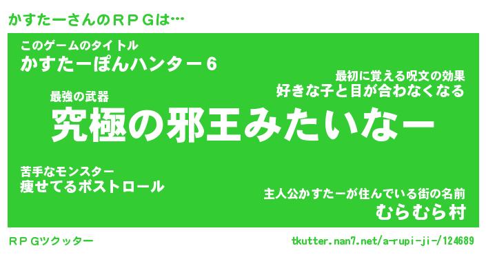 | 男性向けラノベタイトル風あだ名 | 『かすたーの憂鬱』 |