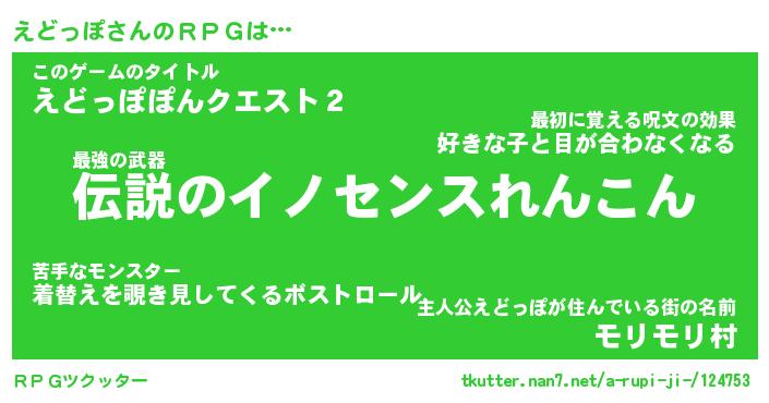 | 意味不明あだ名 | 『ペロリンえどっぽ』『永久保存えどっぽ』 |