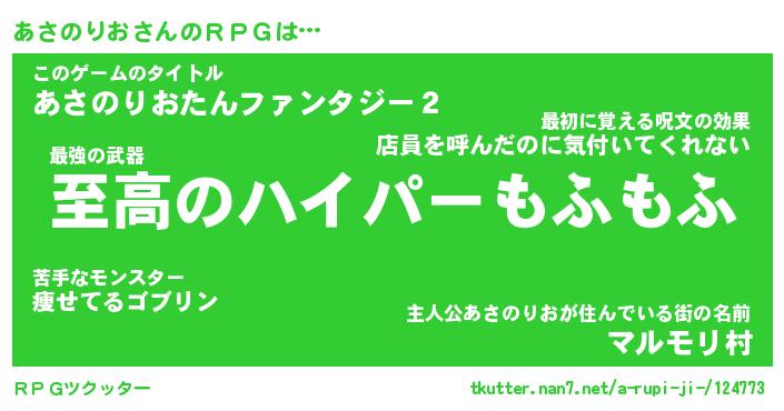 | ファンタジー風あだ名 | 『アサフェル』『エターナルアサノリオー』 |