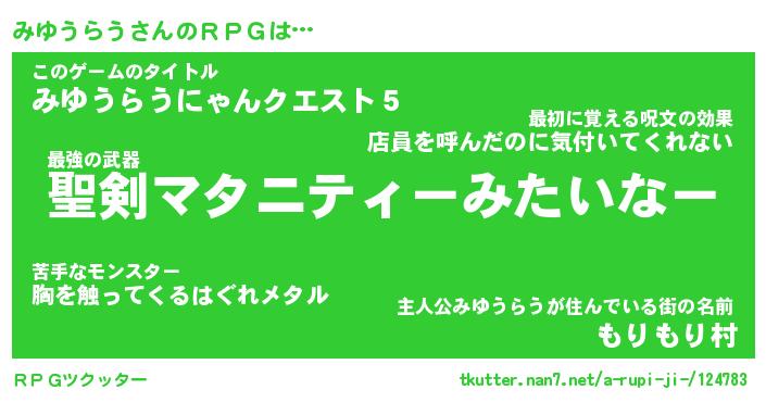 | ファンタジー風あだ名 | 『ミユフェル』『エターナルミユウラウー』 |