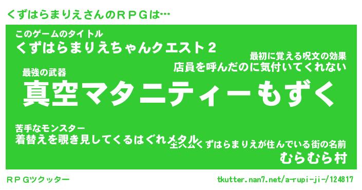 | 胡散臭い通販商品みたいなあだ名 | 『億万長者になれる霊験あらたかなお札…その名も「くずはらまりえ」』 |