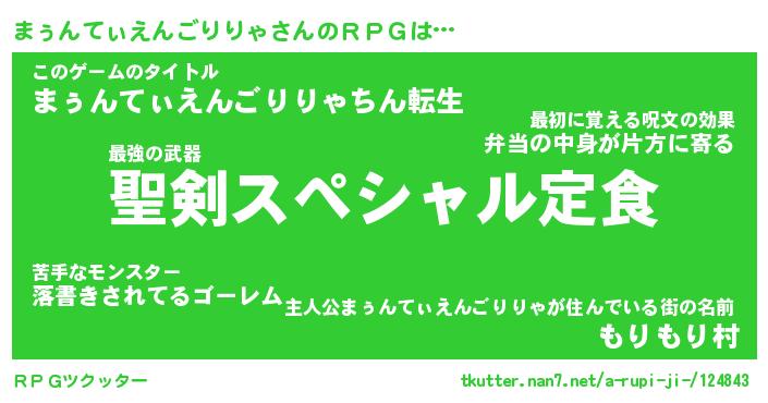 | 胡散臭い通販商品みたいなあだ名 | 『必ず成功するブレスレット…その名も「まぅんてぃえんごりりゃ」』 |