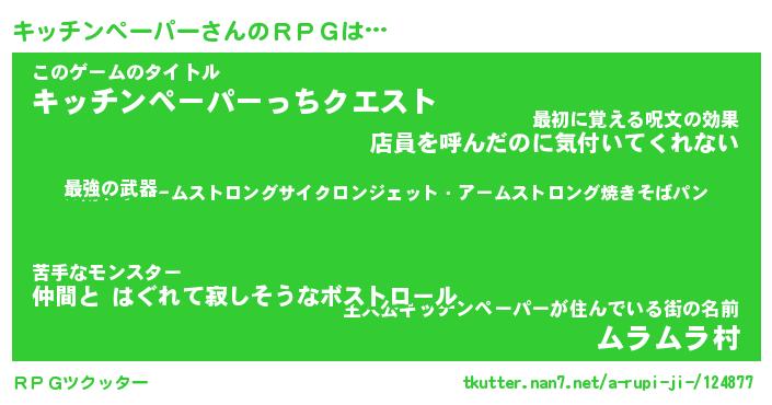| 伝説のあだ名 | 『不死鳥の竜騎士キッチンペーパー』 |