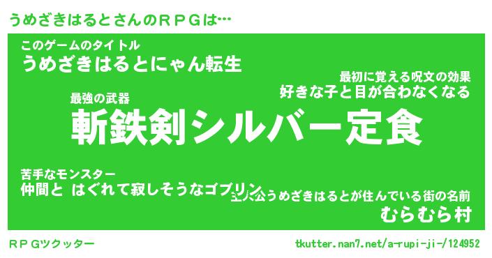 | 男性向けラノベタイトル風あだ名 | 『うめざきはるとの憂鬱』 |
