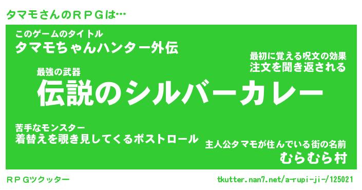 | ファンタジー風あだ名 | 『タマフェル』『エターナルタマモー』 |