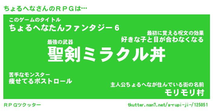 | 伝説のあだ名 | 『伝説の竜騎士ちょるへな』 |