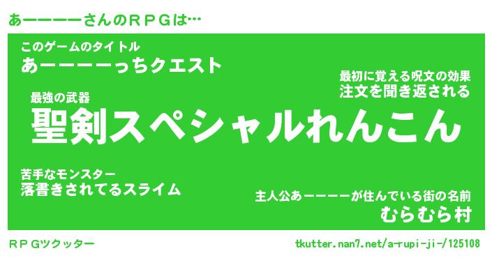 | ヒーロー風カッコイイあだ名 | 『スーパーアーーーー』『幻影騎士アー』 |