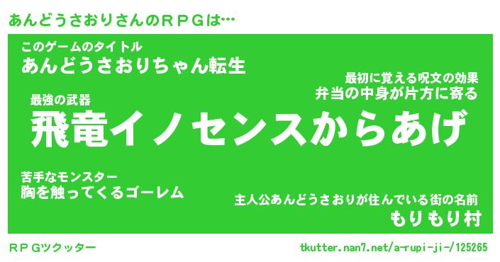 | 肩書あだ名 | 『あんどうさおり御曹司』 |
