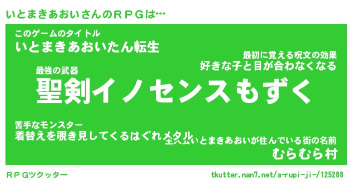 | 胡散臭い通販商品みたいなあだ名 | 『必ず成功する霊験あらたかなお札…その名も「いとまきあおい」』 |
