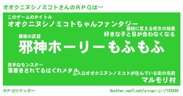 | 胡散臭い通販商品みたいなあだ名 | 『億万長者になれる水晶球…その名も「オオクニヌシノミコト」』 |
