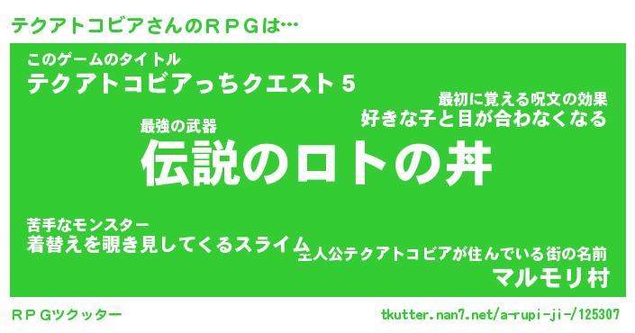 | 女子向けラノベタイトル風あだ名 | 『テクアトコビア姫と円卓の騎士』 |