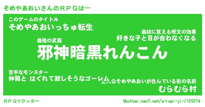 | ヘコむあだ名 | 『そめにゅー』『なまこ酢』『そめを』 |