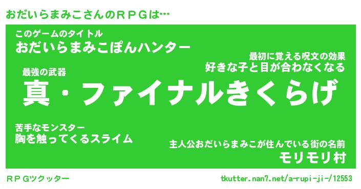 | 伝説のあだ名 | 『封印されし竜騎士おだいらまみこ』 |