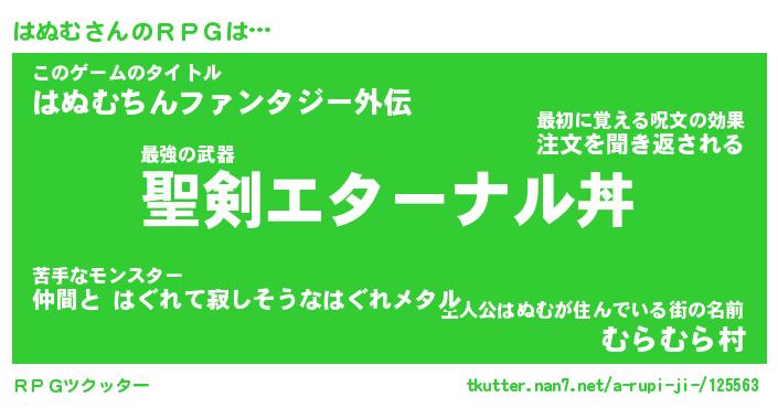 | ファンタジー風あだ名 | 『ハヌフェル』『エターナルハヌムー』 |
