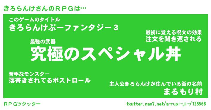 | 料理風あだ名 | 『節約★きろらんけと油揚げの玉子丼』 |