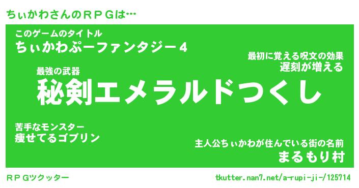 | ファンタジー風あだ名 | 『チィフェル』『エターナルチィカワー』 |