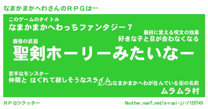 | 伝説のあだ名 | 『伝説の傭兵なまかまかへわ』 |