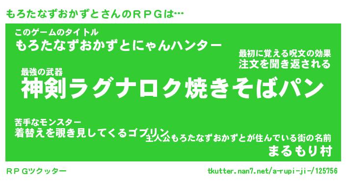 | 料理風あだ名 | 『節約★もろたなずおかずとと油揚げの玉子丼』 |