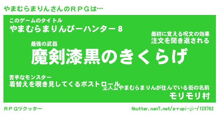 | 男性向けラノベタイトル風あだ名 | 『やまむらまりんの憂鬱』 |