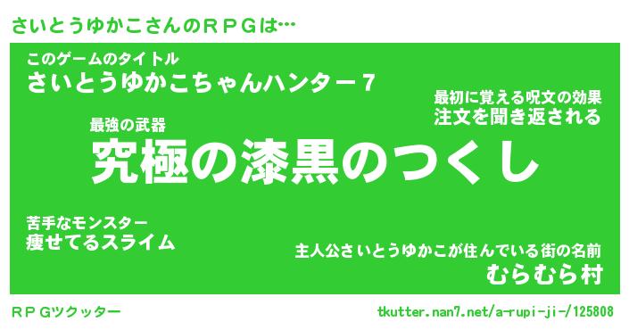 | 男性向けラノベタイトル風あだ名 | 『サイトウユカコアートオンライン』 |