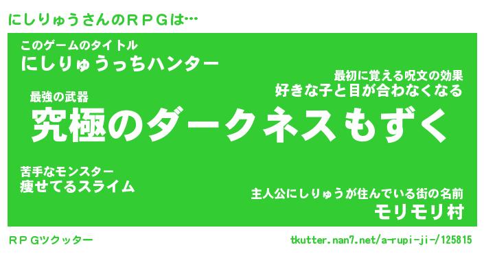 | ファンタジー風あだ名 | 『ニシフェル』『エターナルニシリュウー』 |