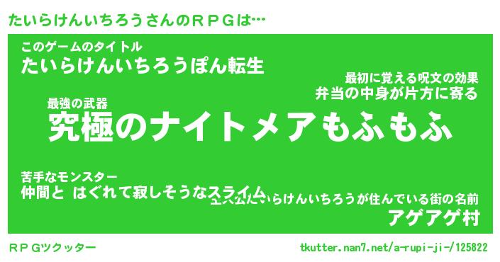 | 男性向けラノベタイトル風あだ名 | 『タイラケンイチロウアートオンライン』 |