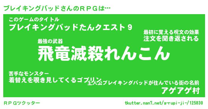 | 男性向けラノベタイトル風あだ名 | 『ブレイキングバッドアートオンライン』 |