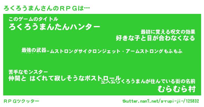 | 伝説のあだ名 | 『伝説の竜騎士ろくろうまん』 |