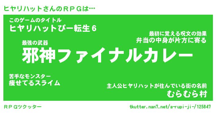 | 伝説のあだ名 | 『封印されし竜騎士ヒヤリハット』 |