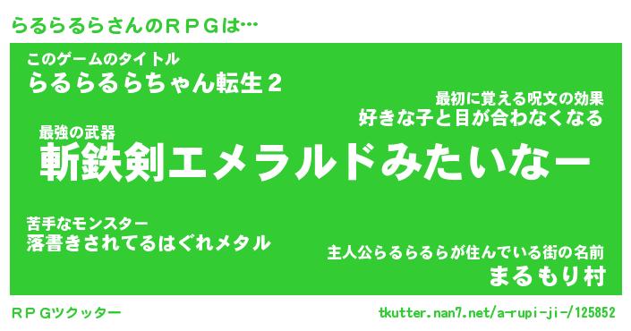 | ヘコむあだ名 | 『らるっふぃ~』『豆乳』『らるを』 |