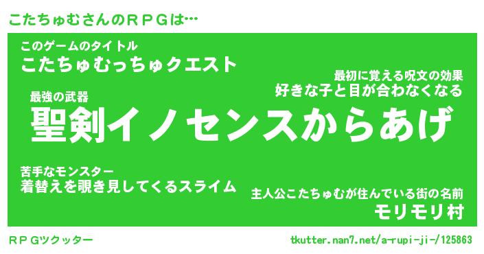 | 胡散臭い通販商品みたいなあだ名 | 『必ず成功する霊験あらたかなお札…その名も「こたちゅむ」』 |