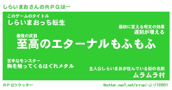 | ファンタジー風あだ名 | 『シラフェル』『エターナルシライマオー』 |