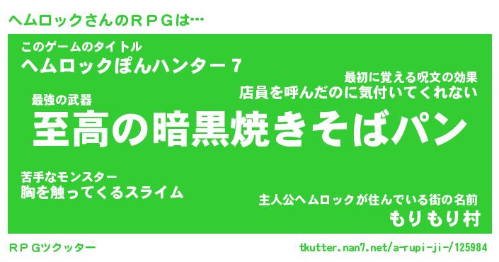 | ヒーロー風カッコイイあだ名 | 『スーパーヘムロック』『黄金騎士ヘム』 |