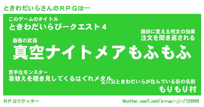 | ヘコむあだ名 | 『ときっふぃ~』『酢こんぶ』 |