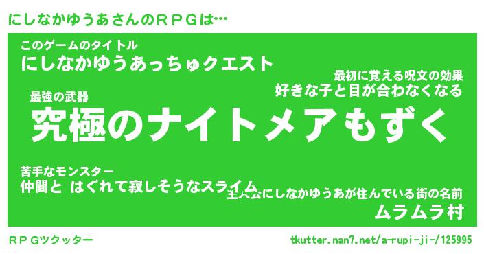 | 肩書あだ名 | 『にしなかゆうあ御曹司』 |