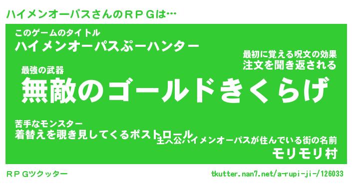 | ヒーロー風カッコイイあだ名 | 『スーパーハイメンオーパス』 |
