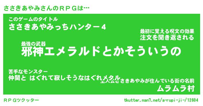 | 伝説のあだ名 | 『封印されしスナイパーささきあやみ』 |