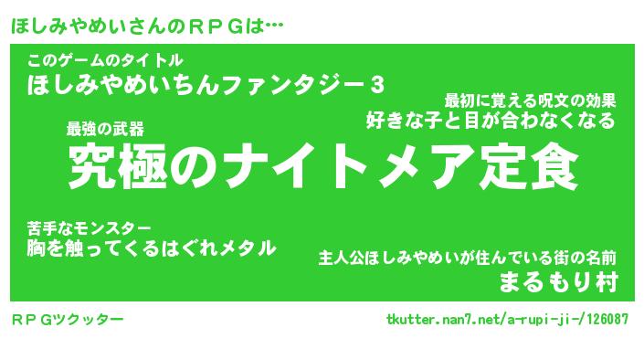 | 胡散臭い通販商品みたいなあだ名 | 『モテモテ間違いなし霊験あらたかなお札…その名も「ほしみやめい」』 |