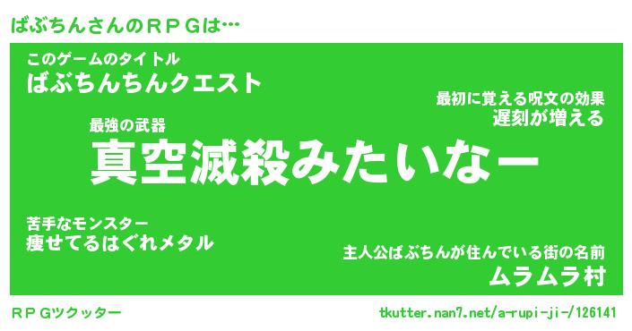 | ヒーロー風カッコイイあだ名 | 『スーパーバブチン』『幻影騎士バブ』 |