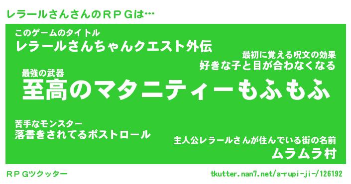 | ヘコむあだ名 | 『レラっふぃ~』『牛乳』『レラを』 |