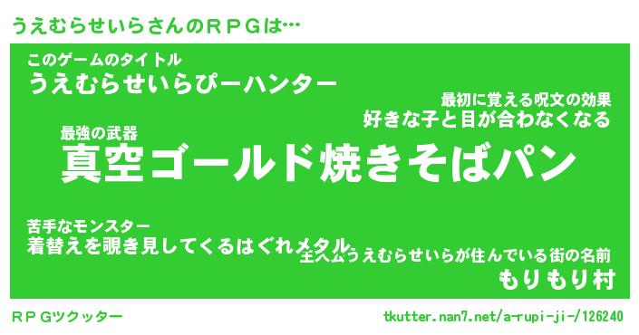 | 胡散臭い通販商品みたいなあだ名 | 『億万長者になれる水晶球…その名も「うえむらせいら」』 |