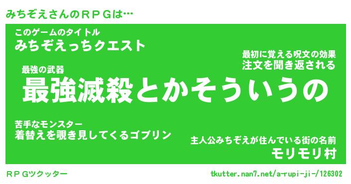 | 男性向けラノベタイトル風あだ名 | 『ミチゾエアートオンライン』 |