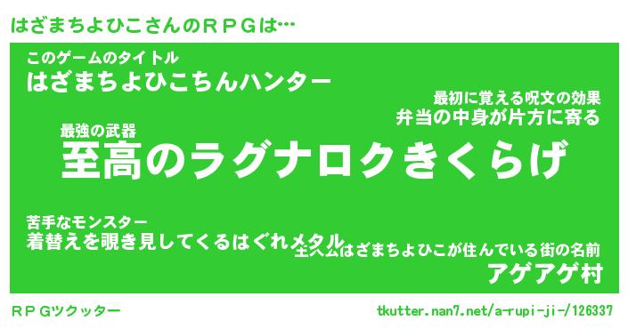 | ピコ太郎風あだ名 | 『ハコ三郎』『ピハ八郎』『ハザ二郎』 |