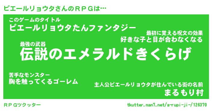 | 男性向けラノベタイトル風あだ名 | 『ピエールリョウタの憂鬱』 |