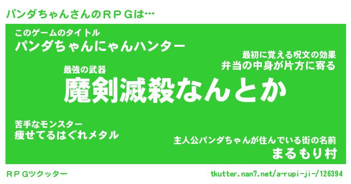 | ヒーロー風カッコイイあだ名 | 『スーパーパンダチャン』『魔戒騎士パン』 |