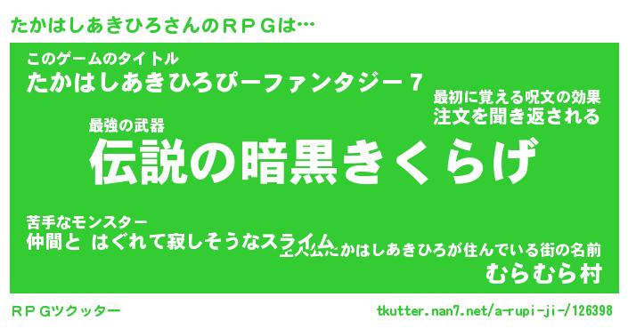 | 伝説のあだ名 | 『不死鳥の傭兵たかはしあきひろ』 |