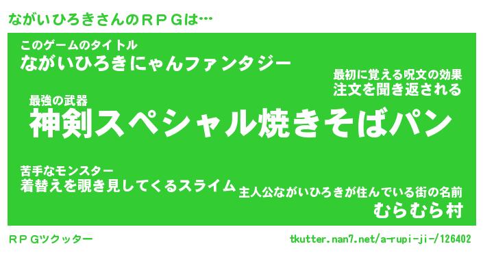 | 男性向けラノベタイトル風あだ名 | 『ながいひろきの憂鬱』 |