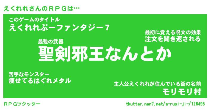 | 伝説のあだ名 | 『伝説の傭兵えくれれ』 |