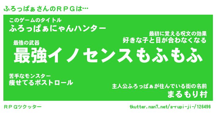 | ファンタジー風あだ名 | 『フロフェル』『エターナルフロッパァー』 |