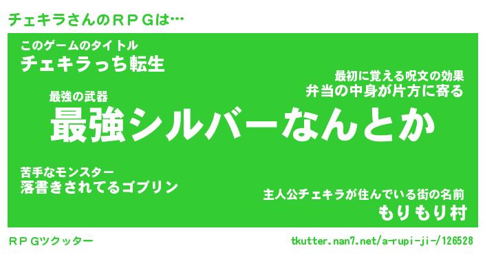 | 料理風あだ名 | 『節約★チェキラと油揚げの玉子丼』 |